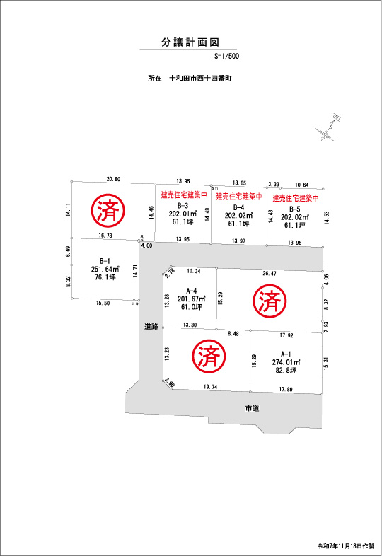 | 備 考 | 【令和7年5月29日】価格の改定および全区画の建築条件を外しました。 【令和7年11月18日】A-1区画の分譲面積および価格の変更をいたしました。 |